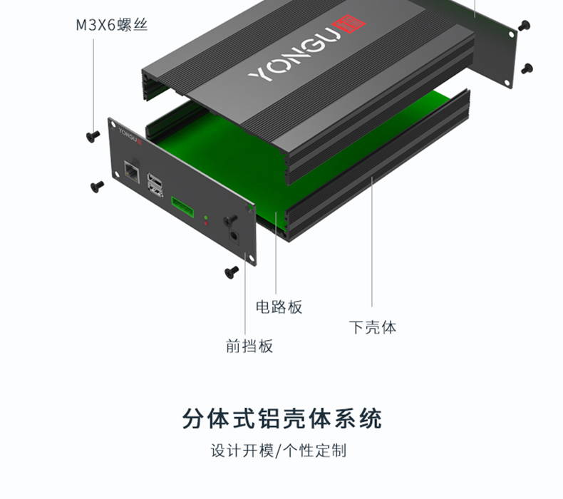 壳体组件:上下壳体+前后档板+8颗螺丝(挡板厚度1.5mm)